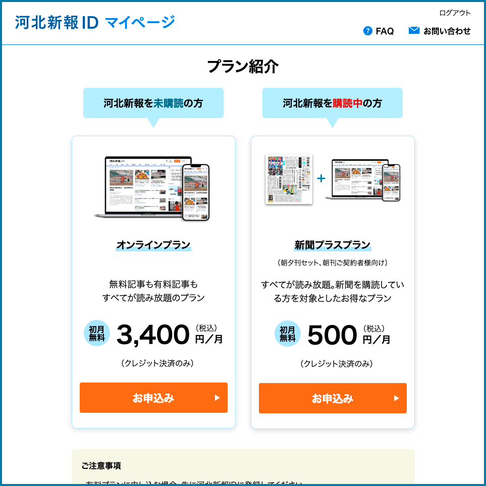 ※有料プランのお申し込みには「河北新報ID」登録が必要です。未登録の方は、登録画面に移行します