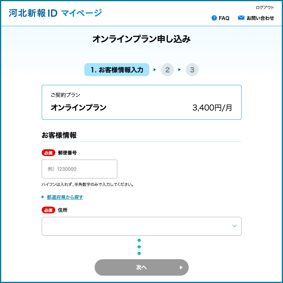 登録情報の入力(画面はオンラインプラン申し込み画面)